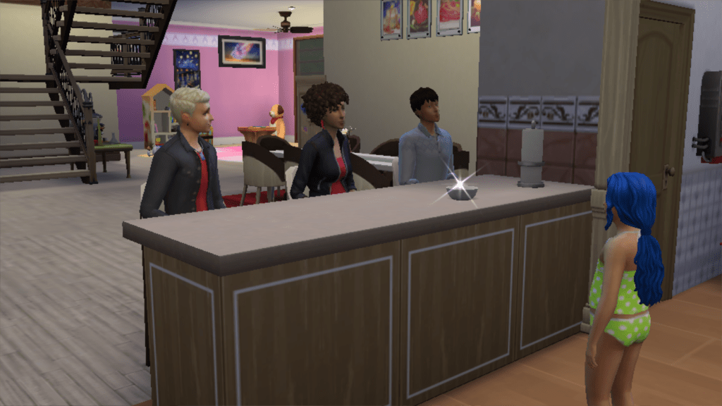 I have absolutely no idea why I took this Picture lol But I mean, maybe it was so I could say how cute Nitza looks with her outfit? I think She’s adorable~ Also, for the longest time since my last hiatus I believed she had the Rambunctious Scamp aspiration instead of Whiz Kid, so I was having her do motor skilling instead of mental, and didn’t looked to see her aspiration panel until a while later lol!
