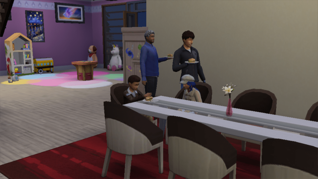 Louis and Jellybean are best friends. With Knox and Javon having so much on their hands, is usually Louis who gives some attention to the puppy. He’s also working on the Pet Training skill, so it’s an extra for them spending time together.