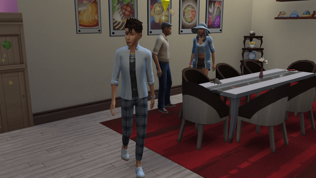 Knox and Javon prefered to stay at the entrance and chat with eachother, Knox was feeling a little bit tense because of his Loner trait.