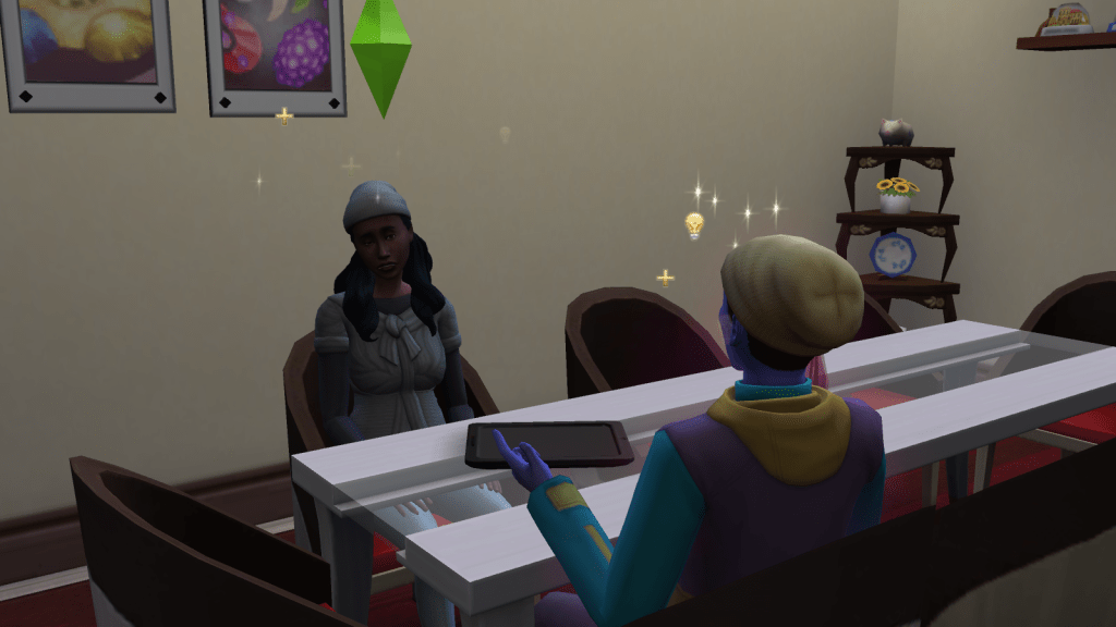 Ellen stayed home a little while after Xzavi went to sleep, and since Oz was awake I checked to see if he had the option to ask her to move in, and he did! Victory~!