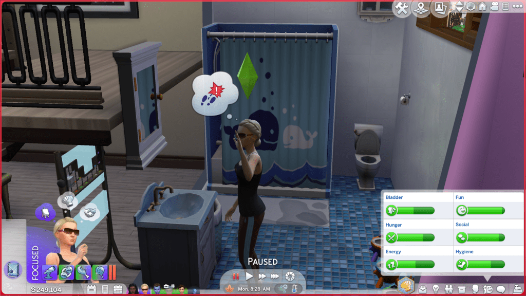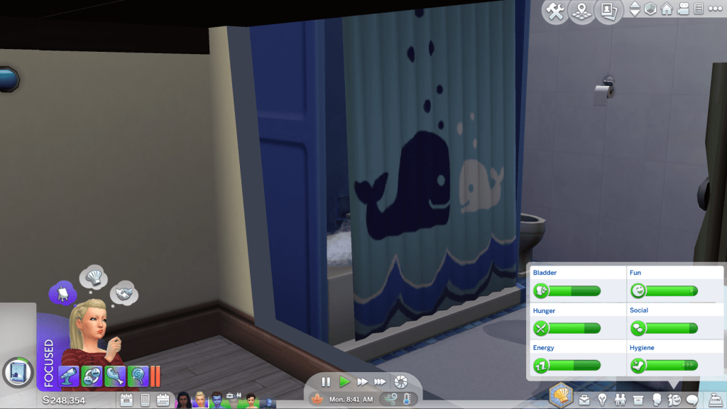 I sent Ellen to repair this bathtub that the ghosts broke last night, but she kept saying she couldn’t access it for some reason. I ended up replacing it instead and then I sent her to take a bath, and apparently THAT she could do lol. Just say you didn’t want to work girl!