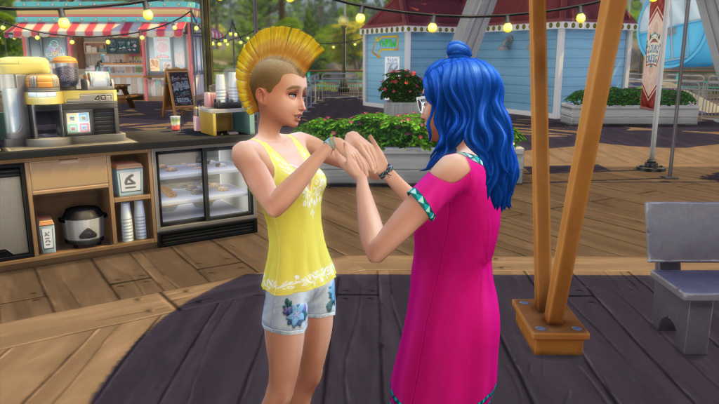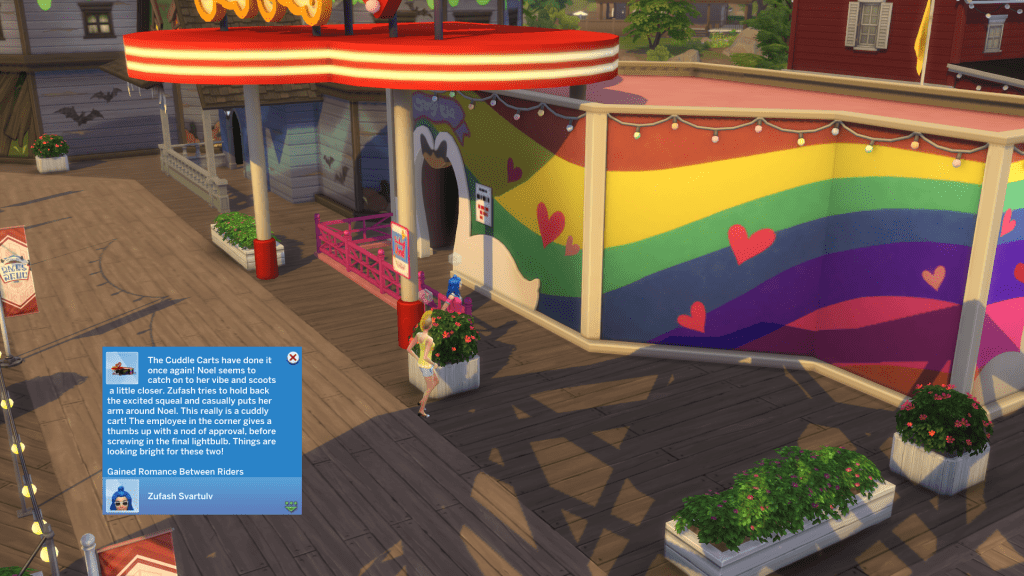 We were having a pretty laid back day, so I ended up deciding to call Noel for a date with Zu~ I had’t gone to the Copperdale pier before, so I wanted to go and try the Cuddle carts lol it was trully adorable, and once they left the ride Zu finally decided to try and kiss her childhood friend! Score~