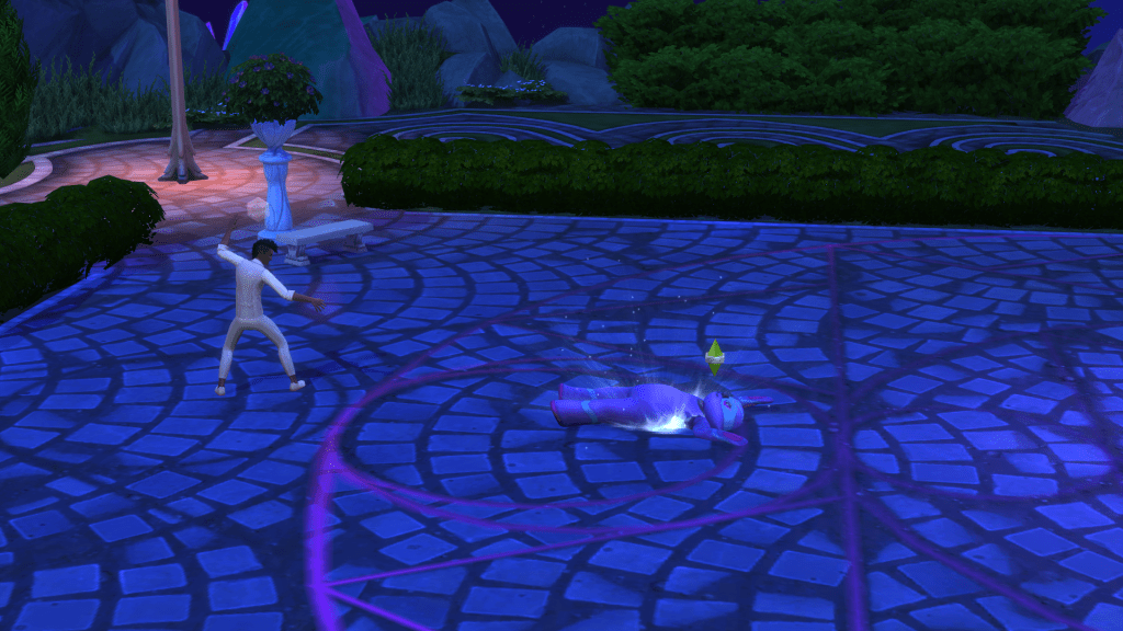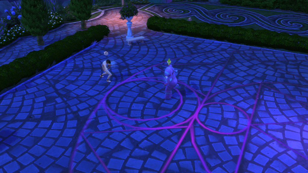 Vaughn has the werewolf aspiration, and to be a werewolf he needs to not be an spellcaster, so we took a trip to the Magic realm so he could be turned into a human.